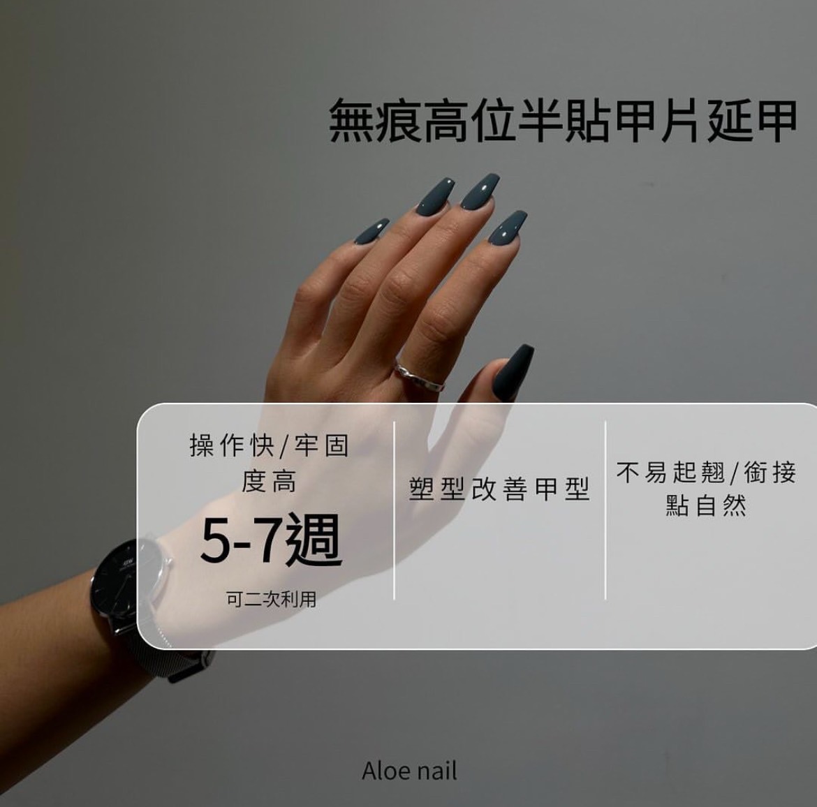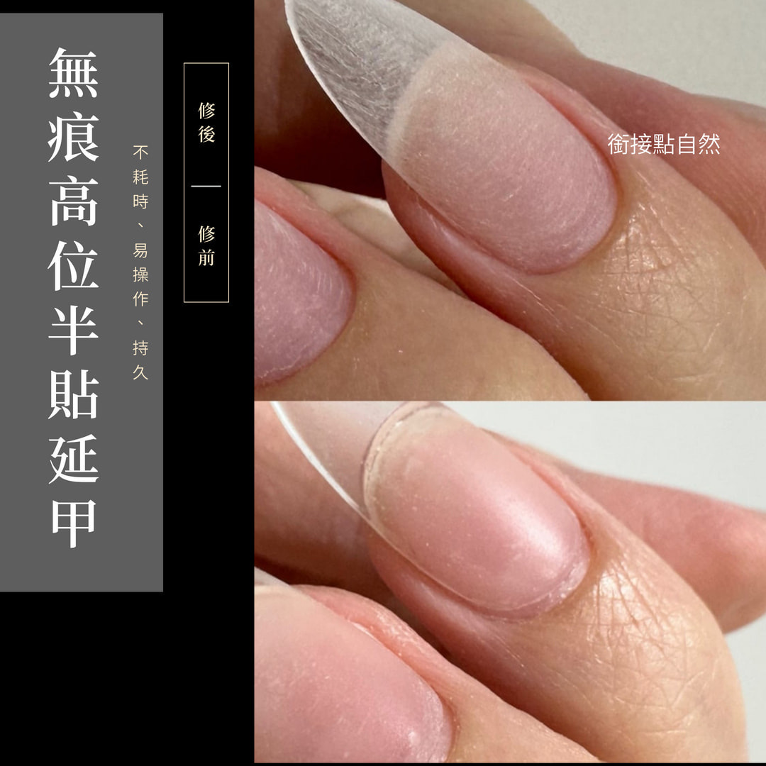 高位半貼的甲片硬度較高,不容易彎曲跟變形,效果更自然,舒適度也更高。